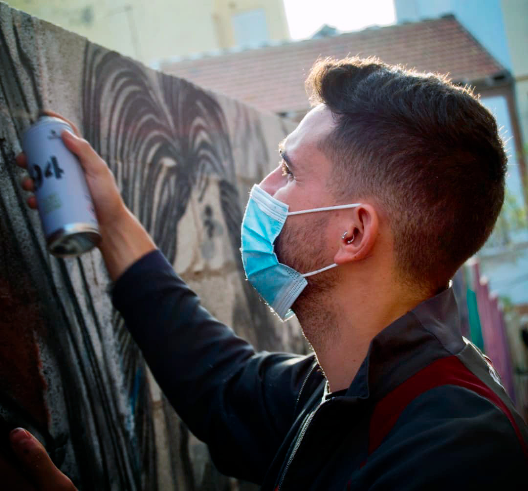 Trabajo bocetos sobre fotografías reales del muro (mockups) y, tras los ajustes con el cliente, cierro el diseño definitivo. En pared respeto tiempos, seguridad y entorno: organizo bien los trabajos, minimizo molestias, coordino accesos, protejo mobiliario urbano y dejo el espacio limpio. Explicar y compartir el proceso con la gente que se acerca forma parte del trabajo.
