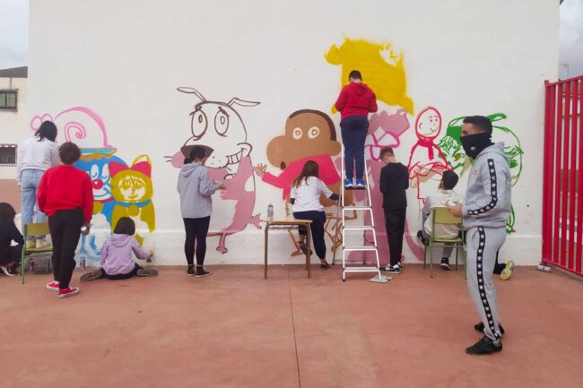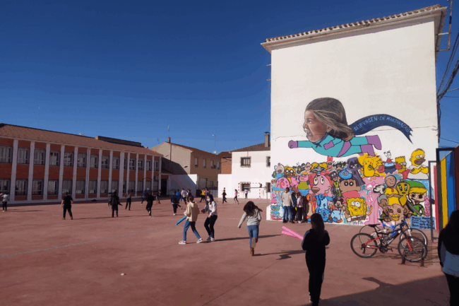Durante unos meses estuve impartiendo a los chavales del CEIP Virgen de Manjavacas, donde el patio del colegio se convierte en un espacio de arte, juego y aprendizaje compartido.