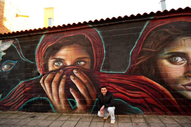 Mural inspirado en la fotografía Afghan Girl de Steve McCurry (National Geographic, 1985), que retrata a la refugiada afgana Sharbat Gula. Tresky lleva al muro su mirada para sacar este icono de la revista y traerlo al espacio público, como recordatorio vivo de la infancia marcada por la guerra y el exilio. La historia original puede leerse en el reportaje