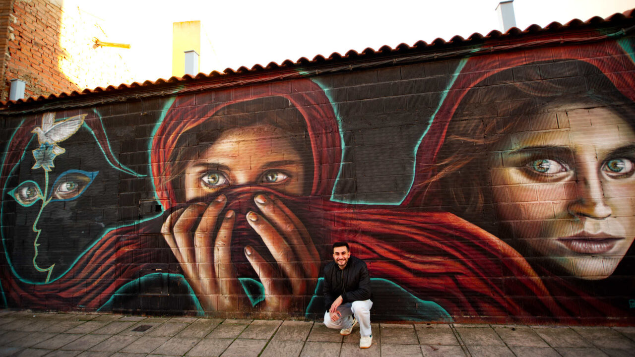 Mural inspirado en la fotografía Afghan Girl de Steve McCurry (National Geographic, 1985), que retrata a la refugiada afgana Sharbat Gula. Tresky lleva al muro su mirada para sacar este icono de la revista y traerlo al espacio público, como recordatorio vivo de la infancia marcada por la guerra y el exilio. La historia original puede leerse en el reportaje