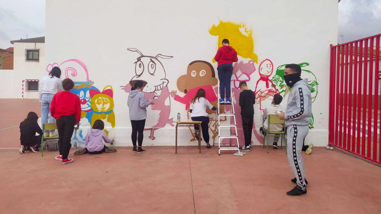 Durante unos meses estuve impartiendo a los chavales del CEIP Virgen de Manjavacas, donde el patio del colegio se convierte en un espacio de arte, juego y aprendizaje compartido.